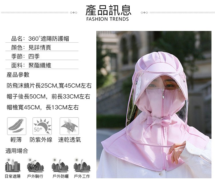 【限量秒殺】360°防疫防塵防飛沫抗UV帽